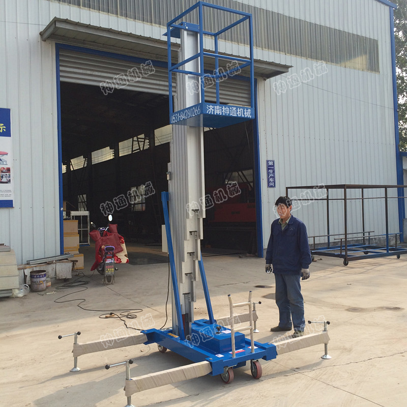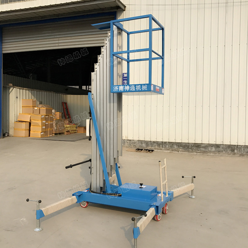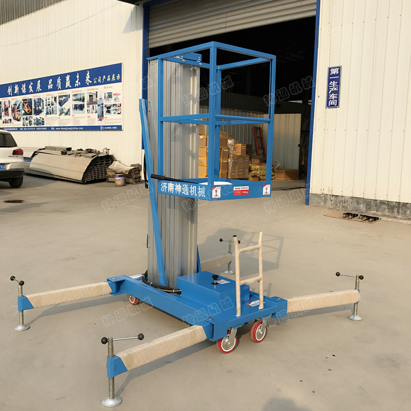 產品介紹:鋁合金式液(yè)壓升降平(píng)台采用高強度優質鋁合金材料,具有造型(xíng)美觀(guān)、體積小、重量輕、運轉靈活,推行(háng)方便。升(shēng)降平穩、安全可靠等優點。雙柱鋁合(hé)金式升降(jiàng)機能穿越一般門廳,可隨意進出電梯,能在極小(xiǎo)的空間內發揮最高的舉(jǔ)升能力。使雙人高空作業變得輕而易舉。且耗電少、無汙染、工作時不傷地麵,可用於貼牆作(zuò)業及探出作業。鋁合金升(shēng)降平台分為單柱、雙柱、三柱和四柱等。