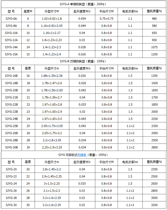 1、套缸式液壓升降(jiàng)平台電壓(yā)均為220V,需380V時單獨注(zhù)明。