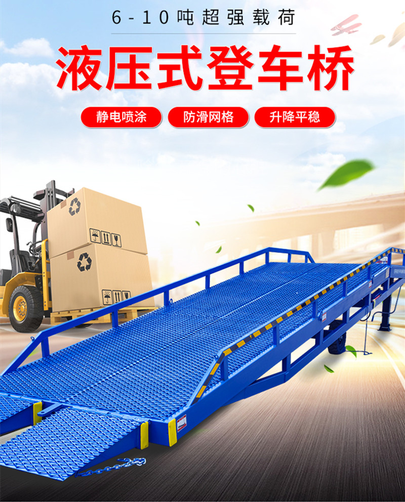 產品介紹:移動式液壓登車橋廣泛用(yòng)於物流(liú)場所,是與叉車配合使用的貨物裝卸專用輔助設備,移動式液壓登車橋相當於一個移(yí)動的鋼結構斜坡,通過(guò)這個斜坡,叉車能直接從地麵駛入汽(qì)車車廂內部(bù)進行批量裝(zhuāng)卸(xiè)作業。該(gāi)液壓登車橋采用人工液壓動力,不需接動力(lì)電源(yuán)。隻需(xū)單人(rén)操作,即(jí)可實現貨物(wù)的安(ān)全快速裝卸。它可使您減少大量勞力,成倍提高裝卸作業(yè)效率,加快(kuài)物料流通速度,獲取更大經濟效益。