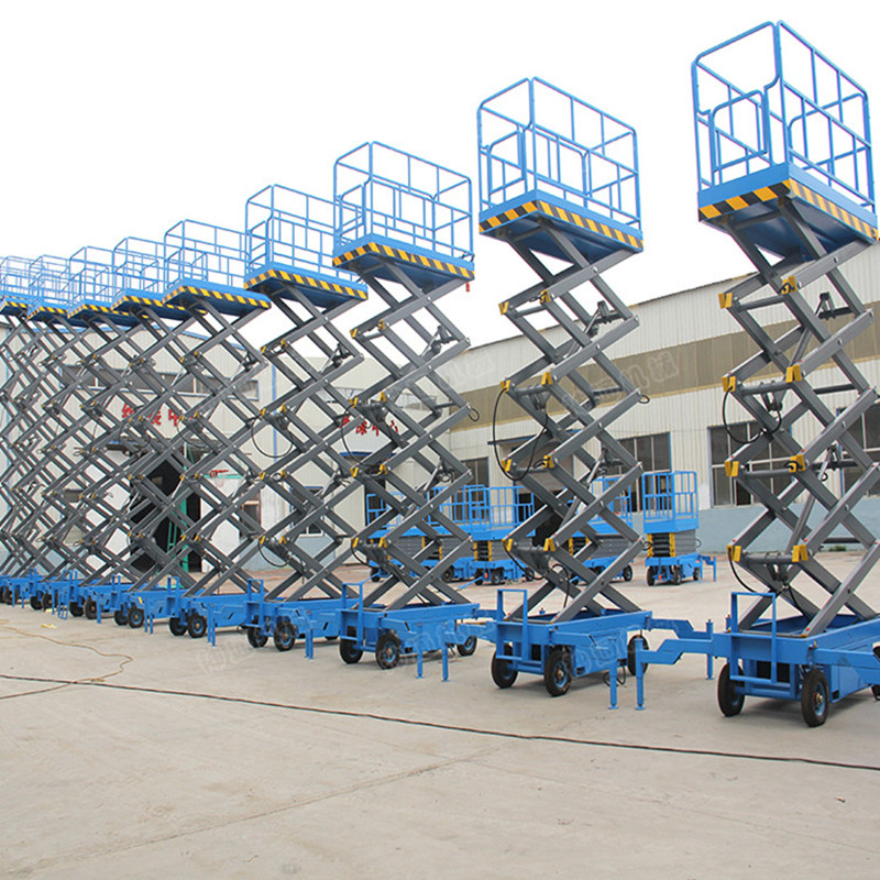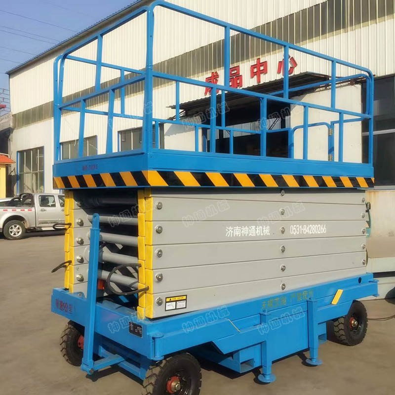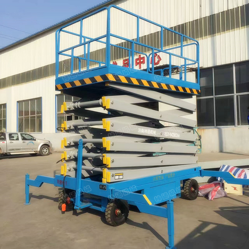 產品介(jiè)紹:牽引式移動升(shēng)降機為人工移動式,具(jù)有移動靈活、升降平穩、操作方便等特點。移動式液壓升降平台其剪叉式結(jié)構,使平台具有較高的穩定性和較高的承載能力,而寬大的作業台麵又可同時容納多人作業。